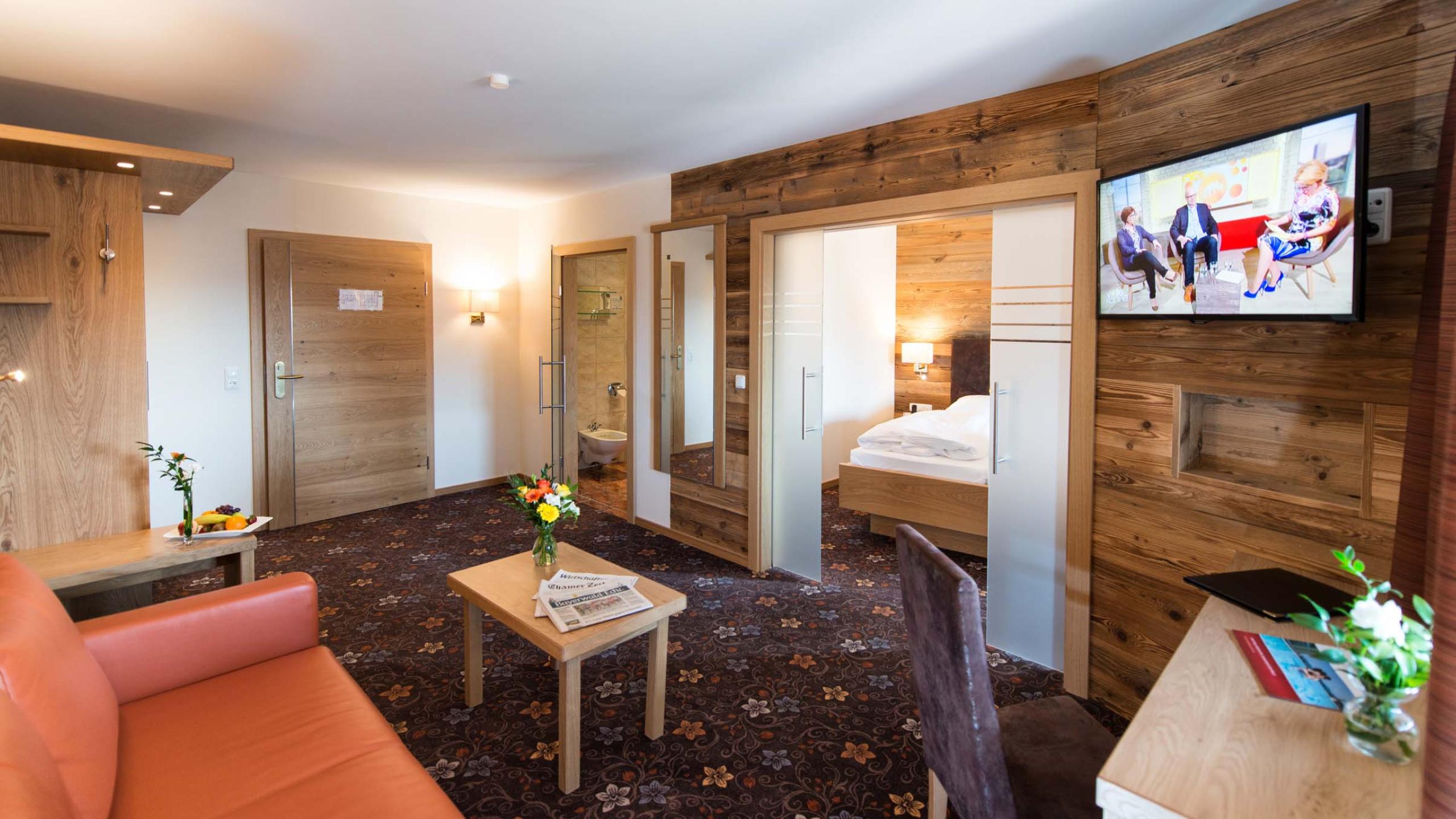 Spacious apartment with fine oak panels, cozy 1,80 x 2,00 Meter bed, bathroom with shower or bathtub, flat-screen TV, some with balcony with wonderful view of Cham, safe, and free Wi-Fi. Some apartments are allergy-friendly, but they all provide our Randsbergerhof inclusive services.
